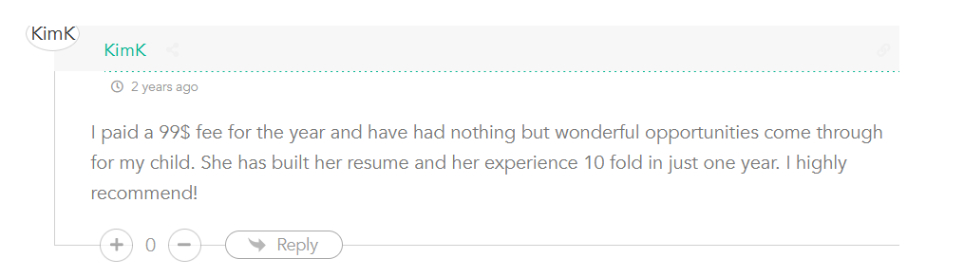 2 years ago, KimK claims that he paid $99 for a year and his child got tons of opportunities. See the screenshot below.