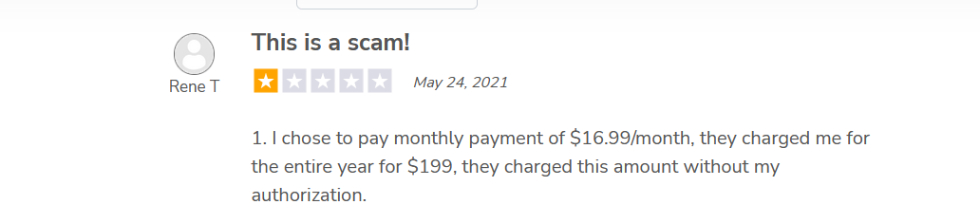 On 21st, May 2021 another member named Rene T posted a comment claiming she paid a monthly fee of $16.99, and later Kids Casting changed her subscription to annually at a price of $199. See the screenshot below.
