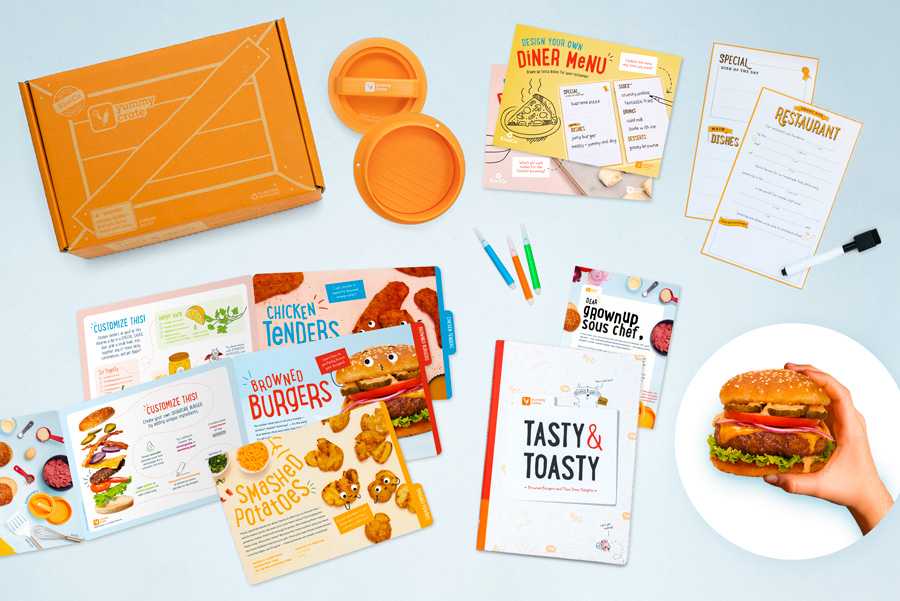 A specialty cooking tool is included in the box to actualize your recipe. For example, when making hamburgers, the box will have a press tool to help you create the perfect burgers.