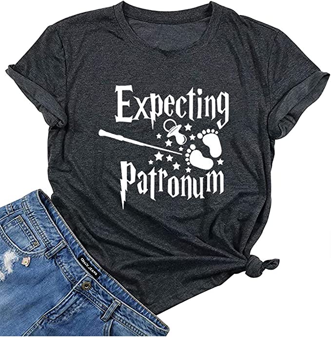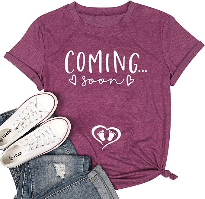 If you’re from the Harry Potter era, this cozy pregnancy announcement shirt is a must-have to reveal you’re expecting a tiny human. You have four dazzling shades to choose from: purple, red, gray, blue, and pink. Its stretchy material is a nice touch.