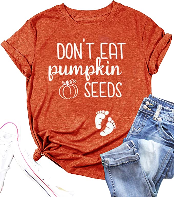 Celebrate Halloween in this fancy t-shirt with the words “DON’T EAT pumpkin SEEDS” embroidered on its front side. It adds some humor to the whole pregnancy reveal a thing. And if you’re not showing yet, not everyone will get the hint, so you’ll get points for pulling a surprise on them.