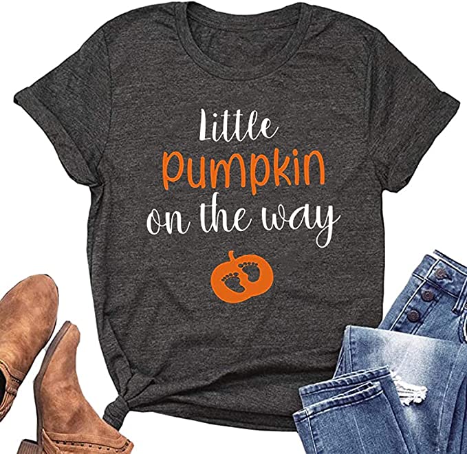 ‘Pumpkin’ now ranks among the most popular terms of endearment. And this cute pregnancy announcement shirt is perfect for letting the world know your “pumpkin” is coming. What’s even more convenient is that it’s long enough to prevent you from showing too much skin.